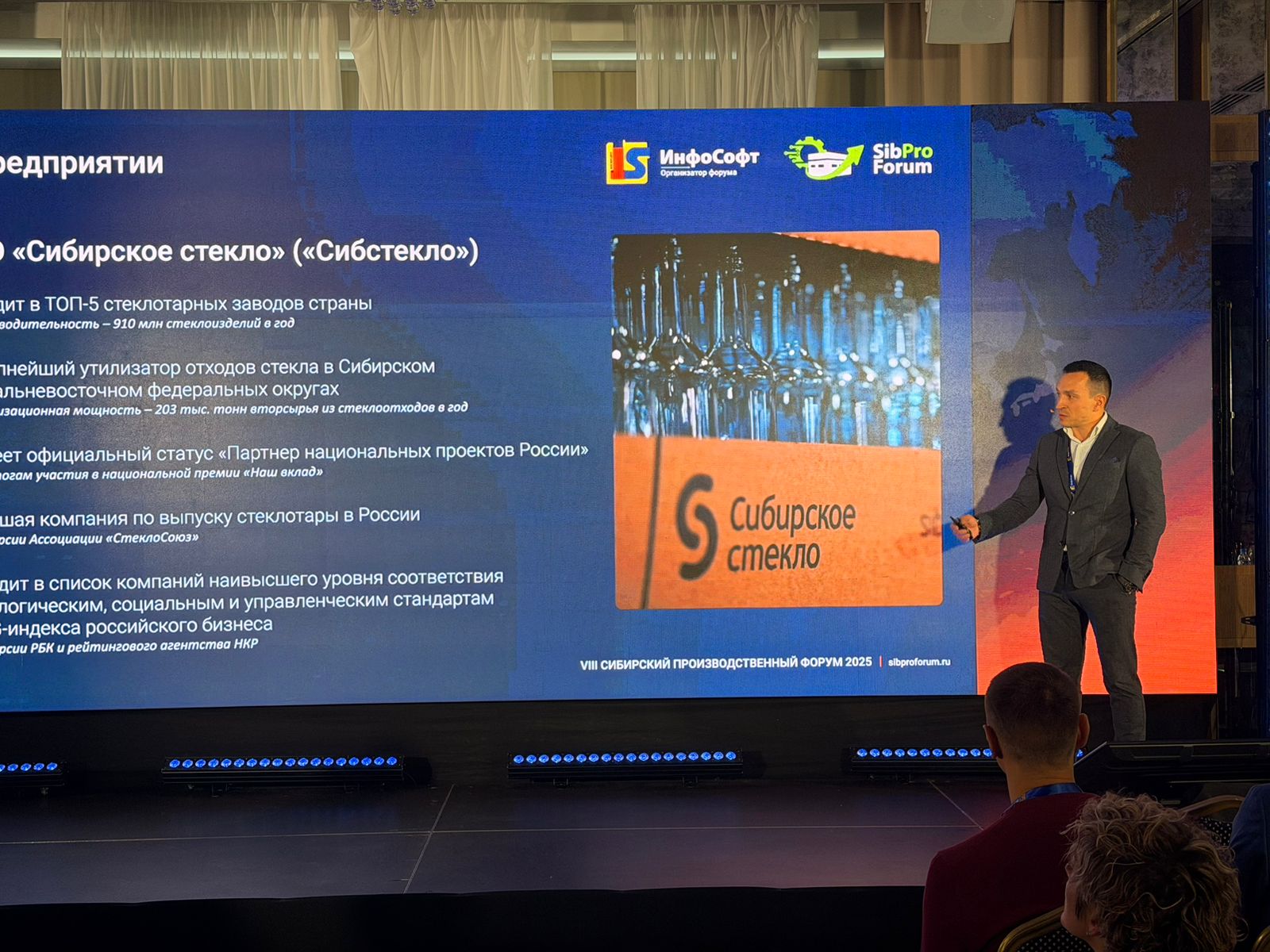 Генеральный директор ООО «Сибирское стекло» Антон Мор выступил на пленарном заседании VIII Сибирского производственного форума. В контексте темы «Устойчивая повестка как стратегический ориентир для повышения эффективности бизнеса» он рассказал как улучшение характеристик продукции приводит к росту производительности, какие экологические инициативы позволяют сократить затраты и укрепить лидерство на рынке, а также с кем развивать партнерства для реализации перспективных проектов.