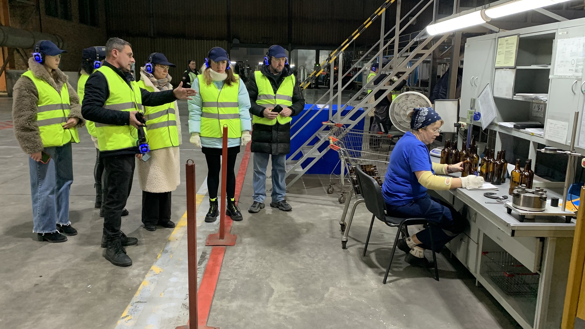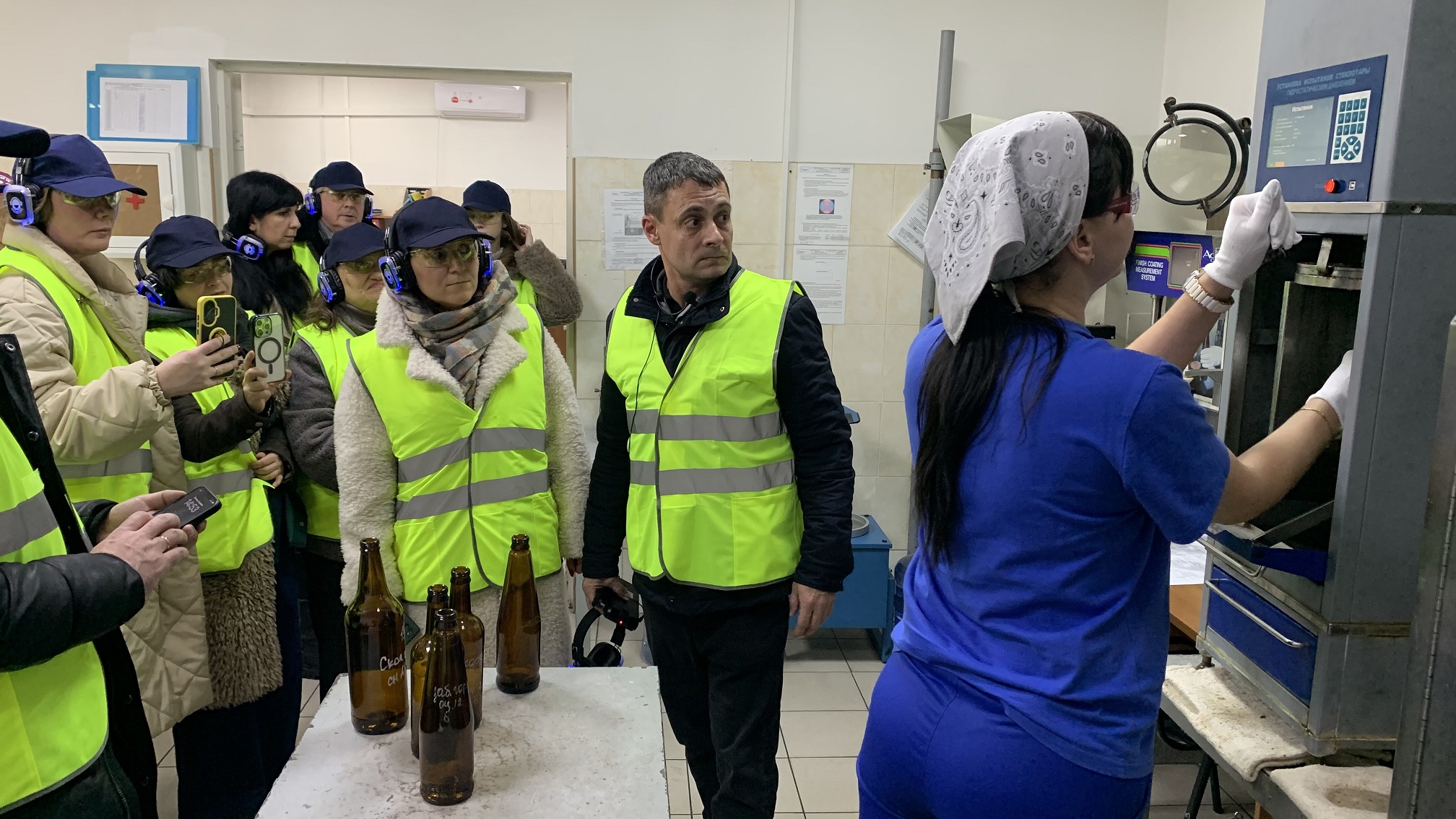 Экскурсантам продемонстрировали основные этапы производства стеклоизделий, в частности, бутылки 0,5 л с рекордно низким весом – 220 граммов, самой легкой в России. Тару изготавливают, применяя до 60 % стеклобоя в составе сырья.