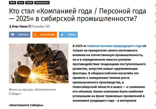 В 2025-м главные вызовы предыдущего года не только не прекратили своего негативного влияния на отечественную промышленность, но и в определенном смысле усилили противодействие тенденциям поступательного развития, запустив новые сдерживающие факторы. В общероссийском масштабе это привело к замедлению темпов роста промышленного производства, в Новосибирской области и вовсе — к снижению его объемов. Какие компании были наиболее успешными на фоне тревожных проявлений в экономике уходящего года – в материале «Континента Сибирь».